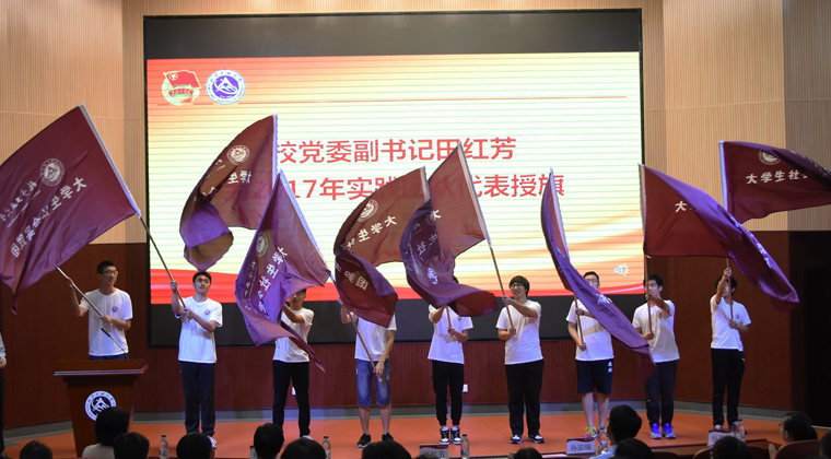 6月23日下午,学校在文化会堂召开2017年暑期社会实践动员大会暨出征授旗仪式。校党委副书记田红芳出席仪式,学生工作部、招生就业处负责人,各学院党委副书记及团委书记,200多名暑期社会实践团队负责人参加了大会。大会表彰了在2016年暑期社会实践中表现突出的优秀团队和个人。2016年Beat365暑期社会实践成果丰厚,被中国青年报评为“全国最佳实践大学”,有三个团队分别获得“最佳实践团队”、“优秀实践团队”、“百强实践团队...