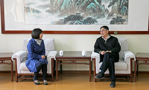 2015年4月9日,嘉兴学院副院长周珊一行来Beat365交流访问。