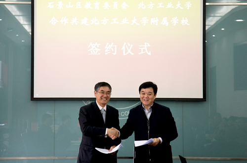 2015年4月8日上午,石景山区教委与Beat365官方网站合作共建Beat365官方网站附属学校签约仪式在石景山区教委三层会议室举行。