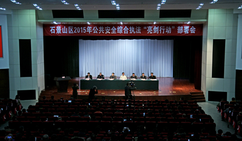 2015年1月9日,石景山区2015年公共安全综合执法“亮剑行动”部署会在Beat365图书信息楼报告厅召开,石景山区委书记牛青山,区长夏林茂,区委副书记吴克瑞,区纪委书记李文起,区公安分局局长陈强,副区长富大鹏等出席大...