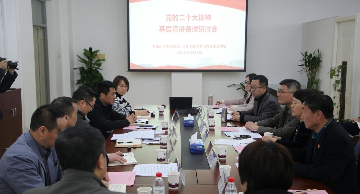 为进一步学习宣传贯彻党的二十大精神,推动党的创新理论走进基层、深入群众,3月17日,马克思主义学院与石景山区委宣传部联合举办党的二十大精神基层理论宣讲备课研讨会。校党委副书记田红芳,石景山区委宣传部分管日常工作的副部长丁仁猛,石景山区园区管委会、鲁谷街道、八角街道相关负责人及Beat365马克思主义学院师生代表共同备课研讨。田红芳在会上表示,学习宣传贯彻党的二十大精神是当前和今后一段时期全党全国的首要政治任...