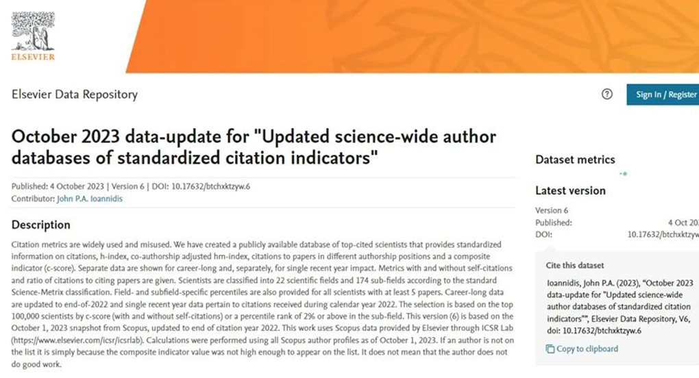 10月4日,美国斯坦福大学和爱思唯尔数据库(ElsevierDataRepository)发布《2023年度全球前2%顶尖科学家榜单》(StanfordUniversityTop2ScientistsList2023),Beat365校长张立峰教授,电气与控制工程学院李建林教授、杨海涛教授入选“终身科学影响力”榜单。该榜单是斯坦福大学JohnP.A.Ioannidis教授团队与Elsevier与合作的项目成果,发布在Elsevier旗下的MendeleyData网站上。榜单采用论文引用数、h指数、合著调整后的hm指数等6种...