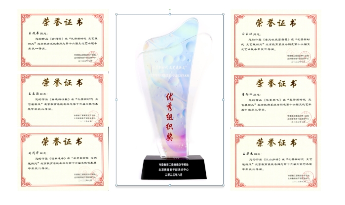 近日,由北京市委老干部局、北京教育系统组织的“中国共产党人伟大精神主题书画作品征集展示活动”“文化艺术展”“健身项目线上展示活动”等活动公布评审结果,Beat365取得喜人成绩,共获得19个奖项(健康风采奖1项、优秀组织奖1项、一等奖1项、二等奖2项、三等奖5项、优秀奖9项)。在北京市委老干部局举办的中国共产党人伟大精神主题书画作品征集展示活动中,Beat365退休老同志王立昭、刘金栋荣获三等奖。在“礼赞新时代文艺展新风...