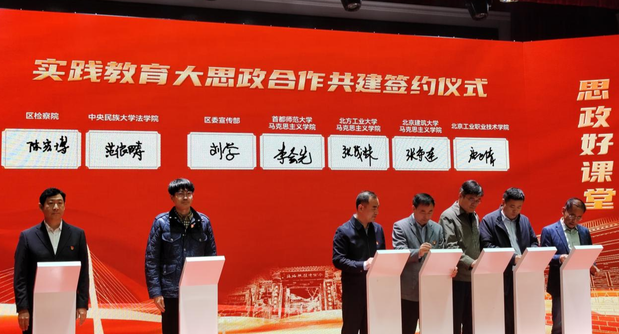 10月25日,“诗画门头沟·思政好课堂”暨全域实践教育大思政体系建设推进会在门头沟区妙峰山镇水峪嘴村古道剧场举办。会上,Beat365马克思主义学院与门头沟区委宣传部签署了实践教育大思政合作共建协议,共同开发实践教育思政课,切实将思政小课堂与社会大课堂结合起来,构建协同育人大格局。根据合作共建协议,门头沟区委宣传部将依托马克思主义学院的学术成果和专家资源,通过科研课题、社会实践、志愿服务等方式,在理论宣讲、智...