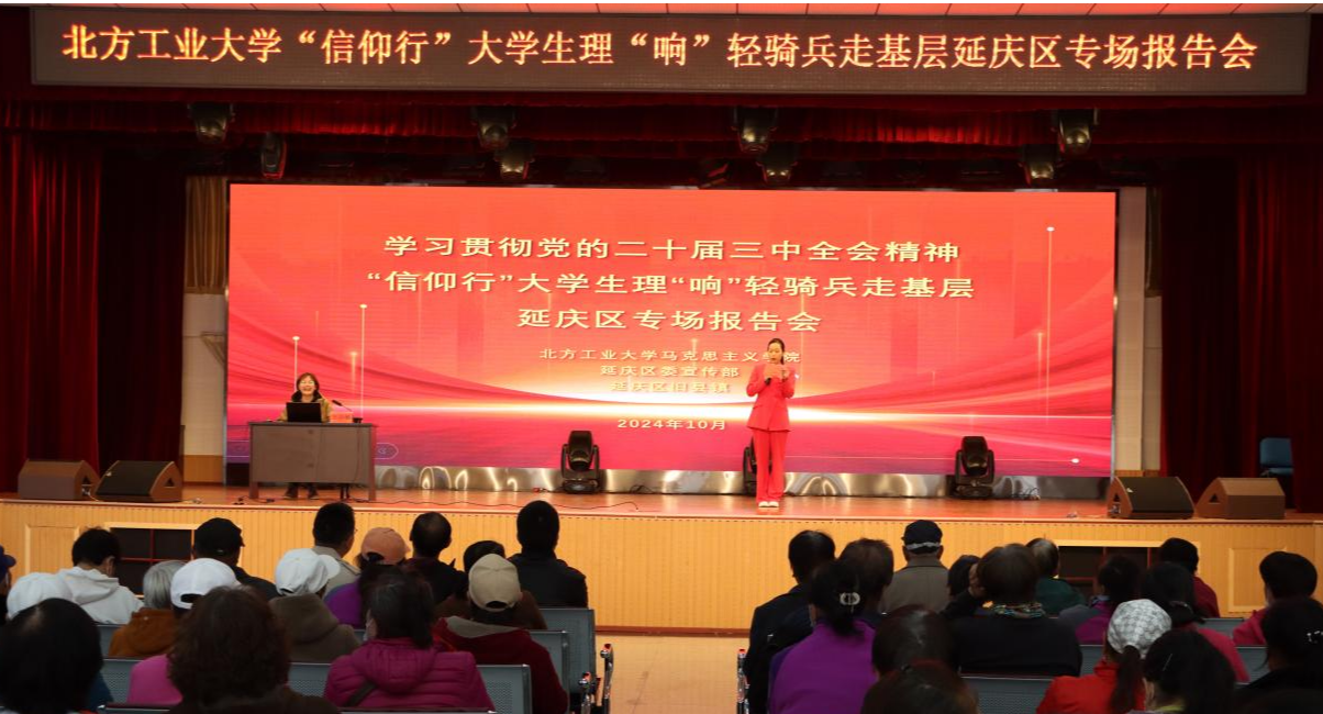 为进一步凝聚思想共识、筑牢理论根基,推动党的二十届三中全会精神紧贴实际、深入人心,10月24日,马克思主义学院师生宣讲团一行赴延庆区,开展“信仰行”大学生理“响”轻骑兵走基层活动。师生们分别来到延庆镇、旧县镇和香水园街道,开展党的二十届三中全会精神专题宣讲。二百余名党员代表、群众代表参加报告会。宣讲活动受到当地党员群众的普遍好评。宣讲团师生紧扣“深入学习贯彻党的二十届三中全会精神”这一主题,分别从...