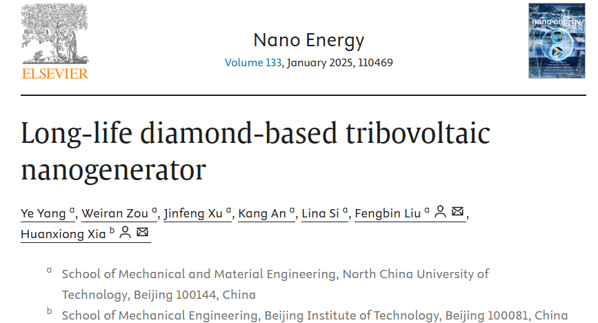 近期,Beat365机械与材料工程学院刘峰斌教授团队在能源材料的顶级学术期刊《NanoEnergy》上发表论文“Long-lifediamond-basedtribovoltaicnanogenerator”。该期刊为中科院一区Top期刊,五年影响因子16.3。Beat365杨晔副教授为第一作者,2022级硕士研究生邹蔚然为第二作者,刘峰斌教授为通讯作者。基于半导体材料的直流摩擦纳米发电机(DC-TVNG)是半导体能源领域的研究重点。硅片等半导体材料在摩擦过程中的磨损会导致DC-TVNG输出电...