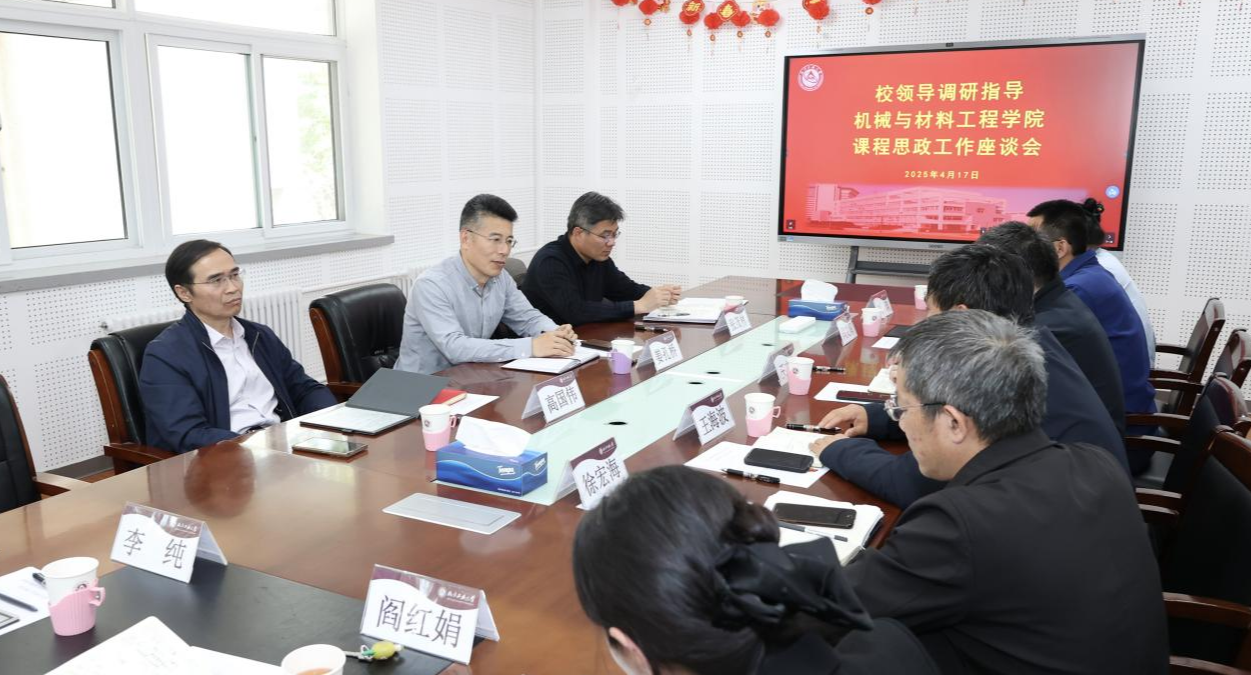 4月17日下午,党委副书记姜孔桥到机械与材料工程学院调研指导课程思政建设。机材学院党委书记王文革、副院长王海波及部分系主任、教师代表参加活动。王文革介绍了学院以德为先、积极推进课程思政情况。学院高度重视课程思政建设,推动教师挖掘专业课程教学中的思政元素,努力推进思政教育与专业教学的有机融合;开展课程思政研讨交流,优秀案例评选表彰等活动,不断提升思政课程建设实效;注重将思政元素与专业实习实践相结合,...