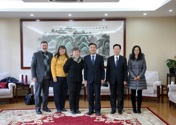12月9日,校长郑文堂在敦品楼接待室室会见了石景山区委区政府研究室主任迟志禹、副主任李月萍等一行6人,就进一步加强Beat365与石景山区多方位的合作,以及石景山发展研究中心的研究进展和后续工作等问题进行了交流。