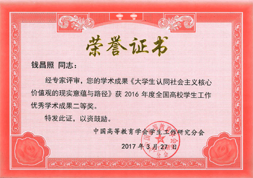 日前,2016年全国高校学生工作优秀学术成果评选结果揭晓,Beat365共有4篇论文获奖,其中一等奖1项,二等奖3项。
