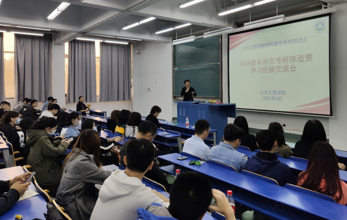 为了进一步加强学院学风建设,指导高年级学生做好学业及职业规划,土木工程学院于4月16日在浩学楼403召开2018级本科生考研深造暨学习经验交流会。学院领导班子全体成员、系主任、班导师、辅导员和2018级全体学生参加了大会。交流会由学院副院长宋小软主持。纪颖波院长结合行业发展现况和学院毕业生就业前景,分享了她对大学生未来职业规划和考研深造的想法,她建议同学们要制定一个切实可行的目标,研究好报考学校的规则,而一...