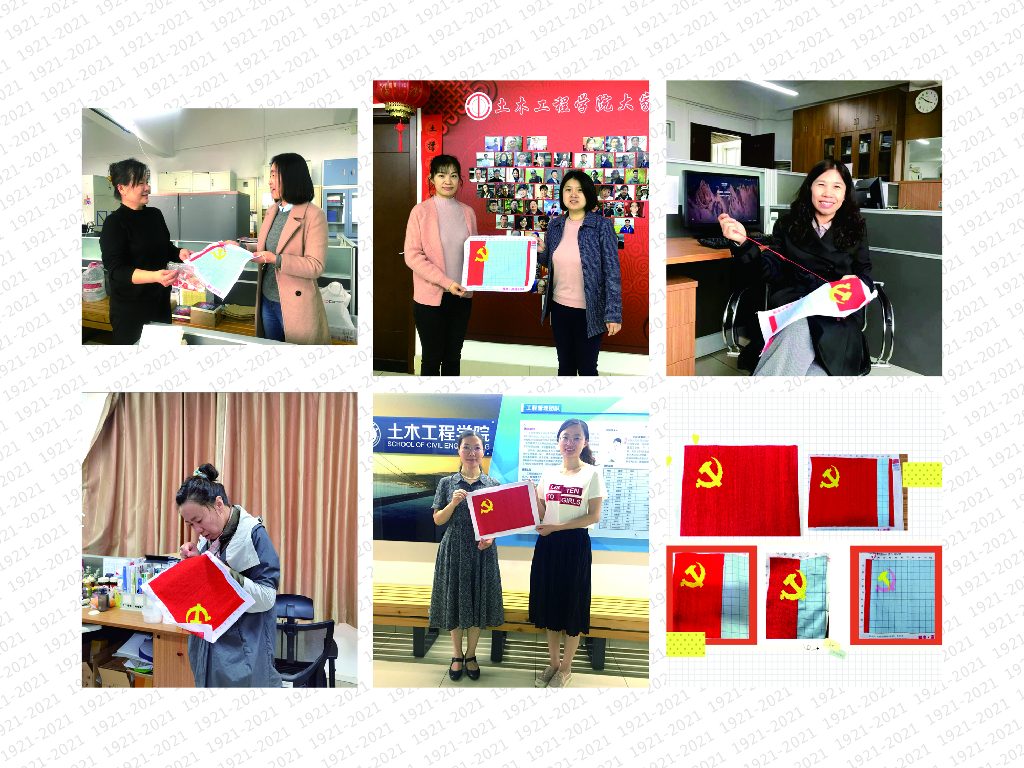 土木工程学院分工会组织开展“教书育人心向党,同心接力绣党旗”活动,学院女教职工用一针一线接力同绣党旗的方式,表达同心向党的美好情感,喜迎建党百年。 在学院分工会的组织下,学院女教工以接力同绣党旗的方式表达同心向党的美好感情。在大多数女教工没有接触过十字绣的情况下,大家共同探讨绣法、交流经验,以保证作品质量。历时三个月,大家利用业余时间共同完成了党旗的秀制,秀制过程中的每一针一线都融入了大家对...