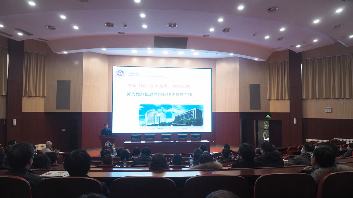 为进一步明确2019年工作目标扎实做好年度工作,2月27日,信息学院在文化会堂召开2019年工作部署会,学院班子成员和全院教职工参加了会议。会议由院党委书记刘文楷主持。 信息学院院长马礼在工作报告中,首先从教育教学质量、专业建设、学科建设、大学生思想政治工作及科研与研究生工作等方面详细梳理了原计算机学院和电子信息工程学院近几年取得的成绩。 在总结2018年工作时,马礼院长指出,2018年学院本科教学工作平稳有序...