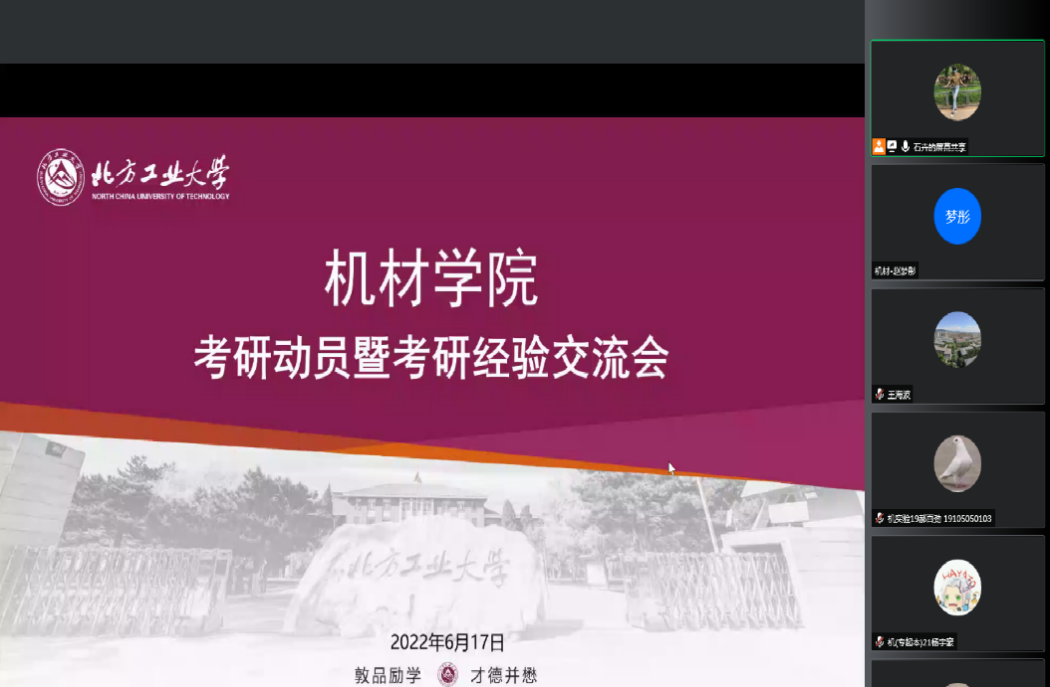 6月17日下午,机材学院在网上举行2023届考研动员大会。院长刘峰斌做考研动员,2名2022届考取研究生代表学生做交流发言,学院党委书记王文革作总结寄语。会议由党委副书记石卉主持,2023届全体考研学生、学院领导班子200余人参加本次活动。刘峰斌从为什么要考研、如何进行备考进行了动员工作。他指出学院高度重视学生考研升学工作,为同学们提供备考帮助和支持,大家应分析自身优劣势,针对性的进行择校备考,希望通过此次动员大...