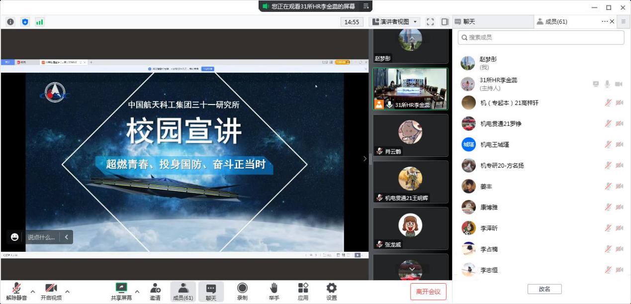 为拓宽毕业生就业渠道,提升毕业生就业信心,增加毕业生的就业机会,近日机材学院举办了多场招聘宣讲会。10月26日,中际联合(北京)科技股份有限公司在励学楼314组织专场招聘会。通过播放宣传片、ppt展示、面对面交流等方式向同学们介绍公司的概况行业地位、职业发展方向、人员需求、薪酬福利、培训校企等,并与学生面对面沟通。航天科工三院三十一所是我院在访企拓岗促就业专项行动中主推的优质就业单位。该所招聘工作岗位与...