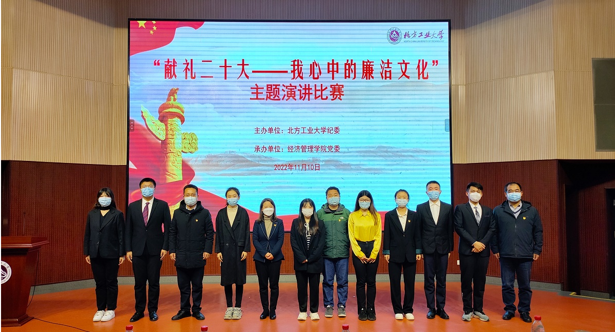 为深入学习贯彻习近平新时代中国特色社会主义思想和党的二十大精神,践行社会主义核心价值观,深入开展党风廉政宣传教育,落实学校纪委工作部署,弘扬廉洁文化,11月10日下午,由校纪委主办、经济管理学院党委承办的“献礼二十大——我心中的廉洁文化”主题演讲比赛决赛在文化会堂举行。经济管理学院党委书记王伟宾、校纪检监察办公室副主任杨嵩松、校学生工作部副部长史宁、校团委副书记靳现凯、经济管理学院党委副书记王帏参...