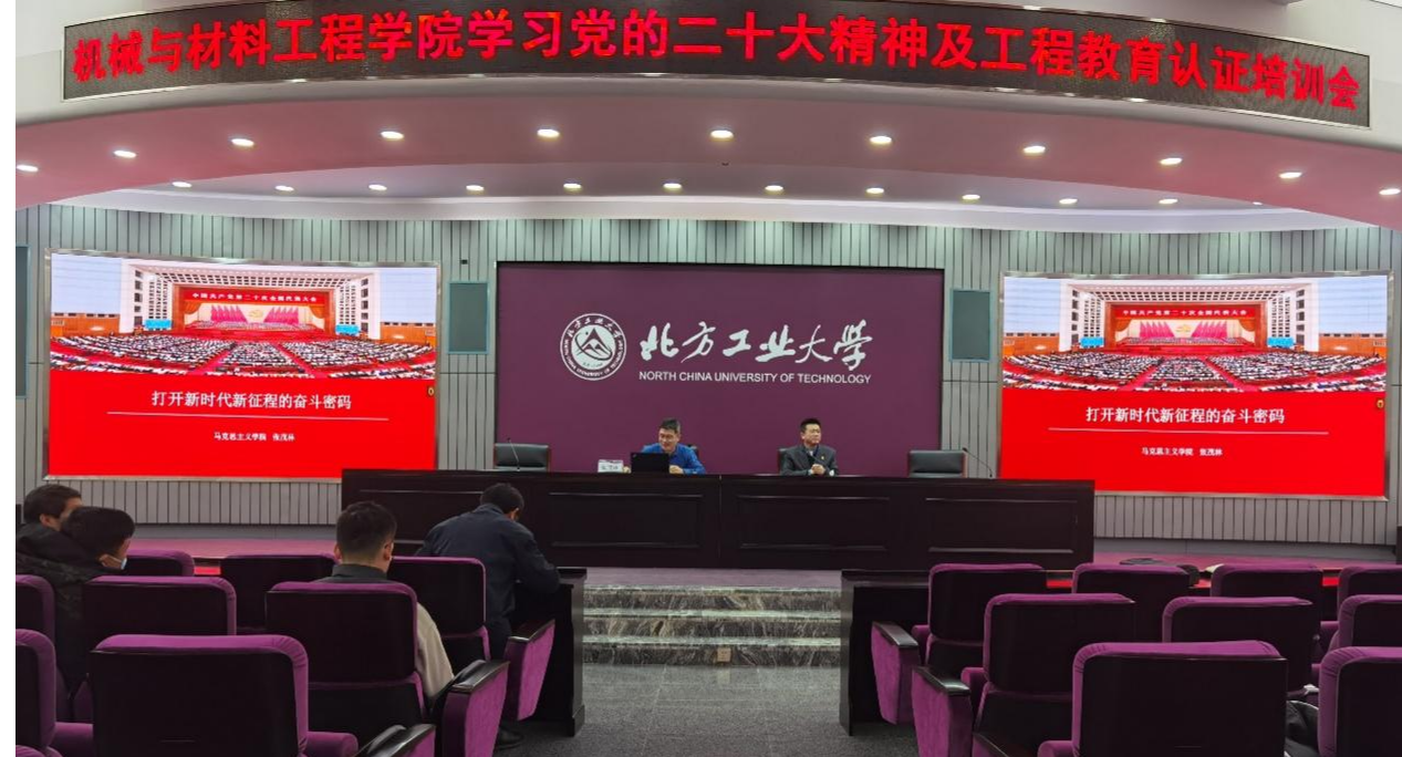 11月11日上午,机械与材料工程学院在广学楼报告厅举办党的二十大精神专题学习宣讲会。马克思主义学院党委书记、北京市教学名师张茂林应邀作专题学习宣讲报告。全体院班子成员和教师、学生代表参加。院党委书记王文革主持报告会。报告会上,张茂林以“打开新时代新征程的奋斗密码”为主题,从党的二十大报告主要内容、党的二十大报告重大创新、党的二十大报告的学习重点等方面,对党的二十大报告进行进行了梳理、解读。宣讲报告...