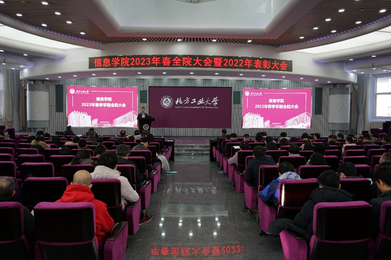 3月2日下午,信息学院在广学楼报告厅召开2023年春季学期全院大会及2022年表彰大会。校党委常委、副校长栗苹应邀出席,学院全体教师参会。会议由信息学院党委书记王月海主持。马礼院长做了题为《凝聚共识,提振信心,攻坚克难,再创新高》的工作报告,全面总结了过去一年来学院在教育教学、科学研究、思想政治工作、疫情防控等方面取得的成绩。学院新增信息安全、数据科学与大数据两个北京市一流本科专业建设点。全院8个本科专业...