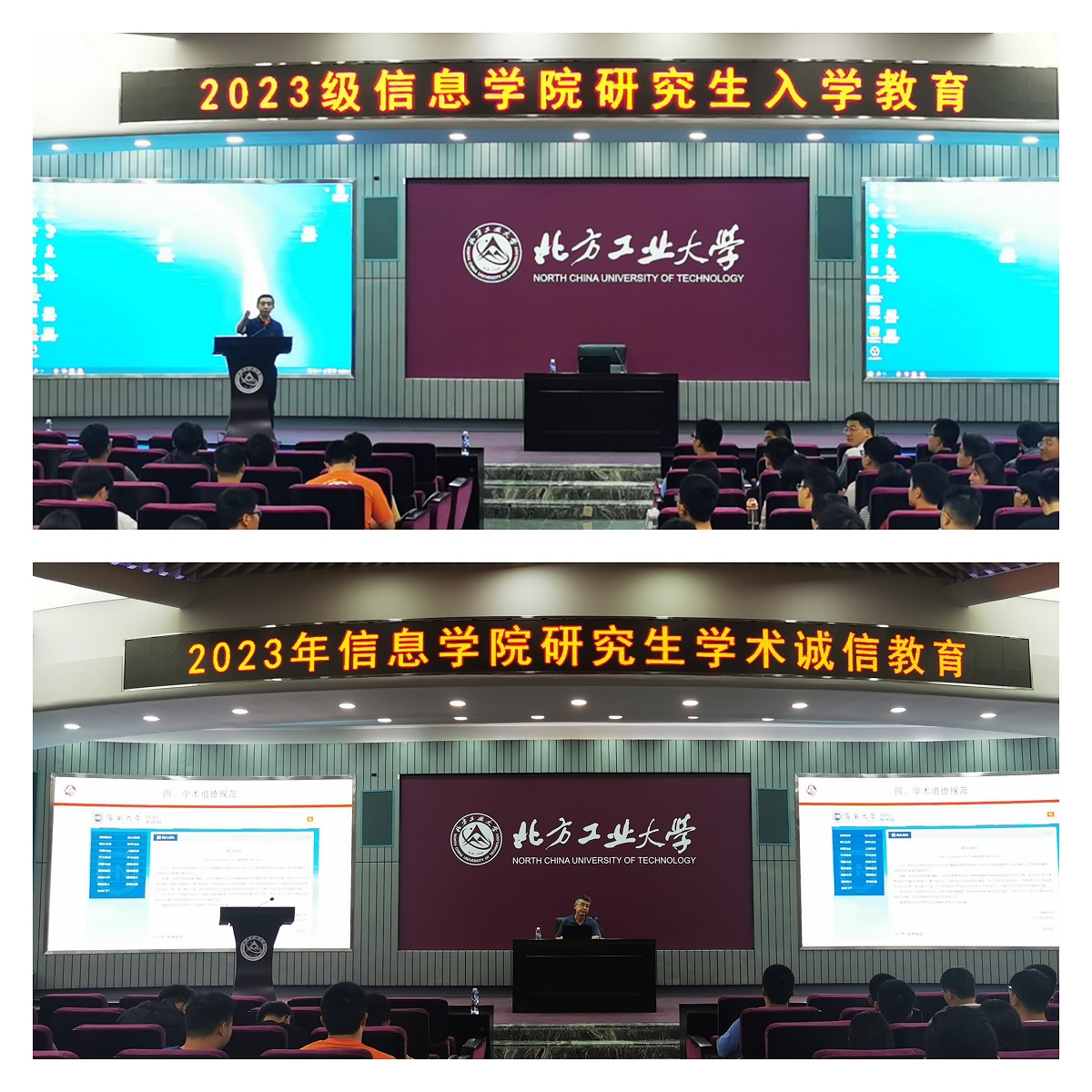 9月7日和8日,信息学院开展23级研究生新生入学教育暨学术诚信教育,活动分为两个部分开展,一是各学科点责任教授组织本学科研究生新生开展入学教育,有针对性地讲解本学科培养过程与要求,责任教授李晋宏、王一丁、肖珂、鲁远耀、张永梅、王辉柏、张键红、戴澜组织了8个场次报告;二是学院给23级全体研究生上入学第一课,开展研究生管理和学术诚信教育,由学院院长马礼和主管科研副院长段建勇分别讲解,信息学院全体23级310名研...