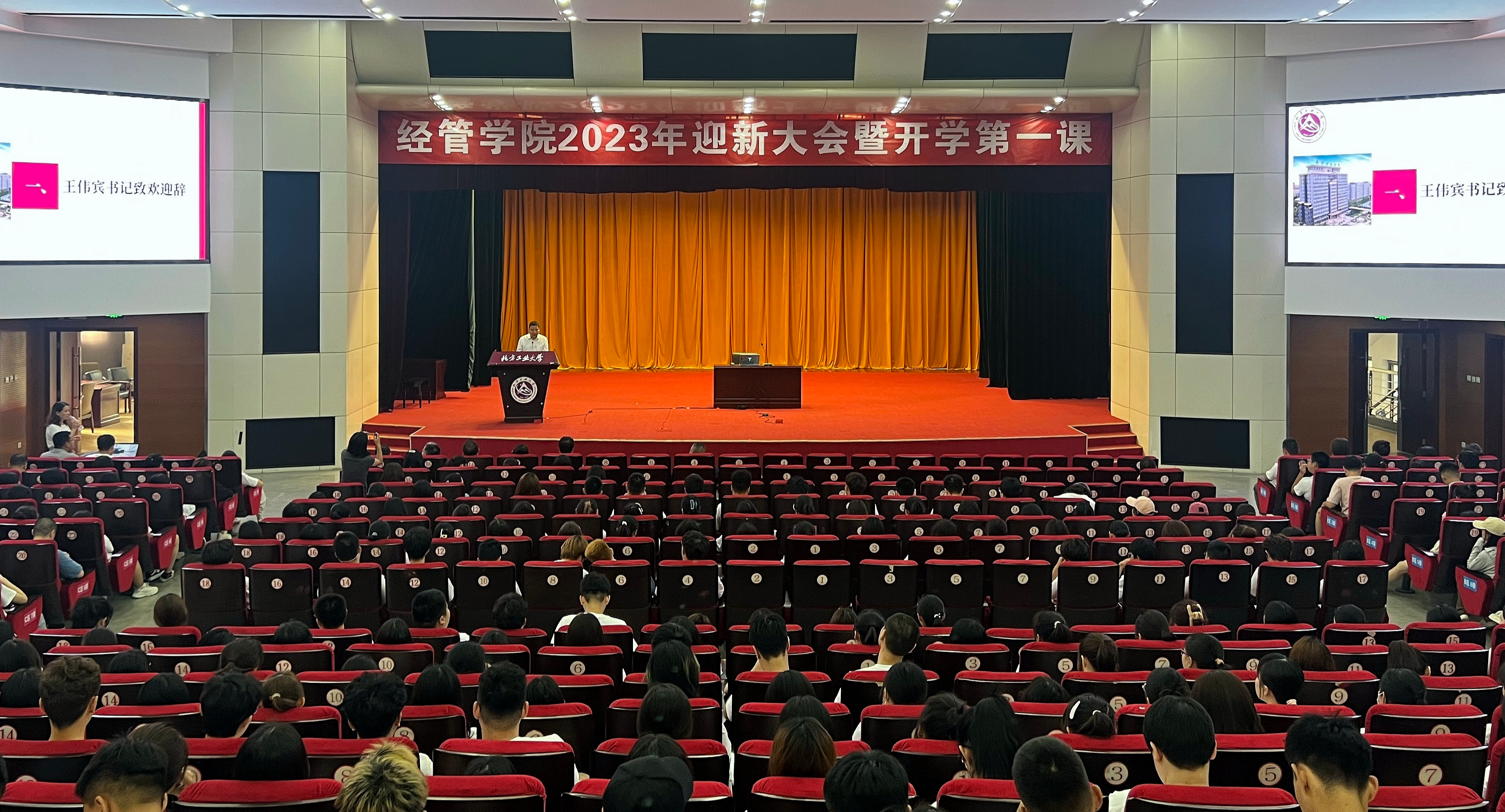 新学年,新起点,新征程,为帮助新生树立正确的奋斗目标,尽快适应校园学习生活,9月6日上午,经济管理学院2023年迎新大会暨开学第一课在图书信息楼报告厅举行。学院领导班子成员、各系主任、新生班导师、各年级辅导员、全体2023级新生参加本次活动。大会由学院党委副书记王帏主持。首先,学院党委书记王伟宾致欢迎辞,对全体新生的到来表示欢迎,祝贺同学们走向新的奋斗起点。他简要回顾了学院的发展历史、特色优势、师资力量...