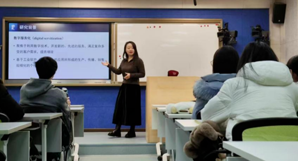 11月24日下午,经济管理学院在励学楼135举行第十四期励学讲堂。诺丁汉大学(中国校区)市场营销学副教授、博士生导师蒋阳阳受邀作题为“制造企业数字服务化发展路径与管理要素”的讲座,经济管理学院近40位研究生参加了此次讲座,学院陶晓波教授主持讲座。蒋阳阳老师从研究背景、研究问题、数字服务化发展路径、数字服务化管理要素这四个方面分享了自己对制造企业数字服务化的研究。在与同学们的互动中让同学们深刻理解了数字化...
