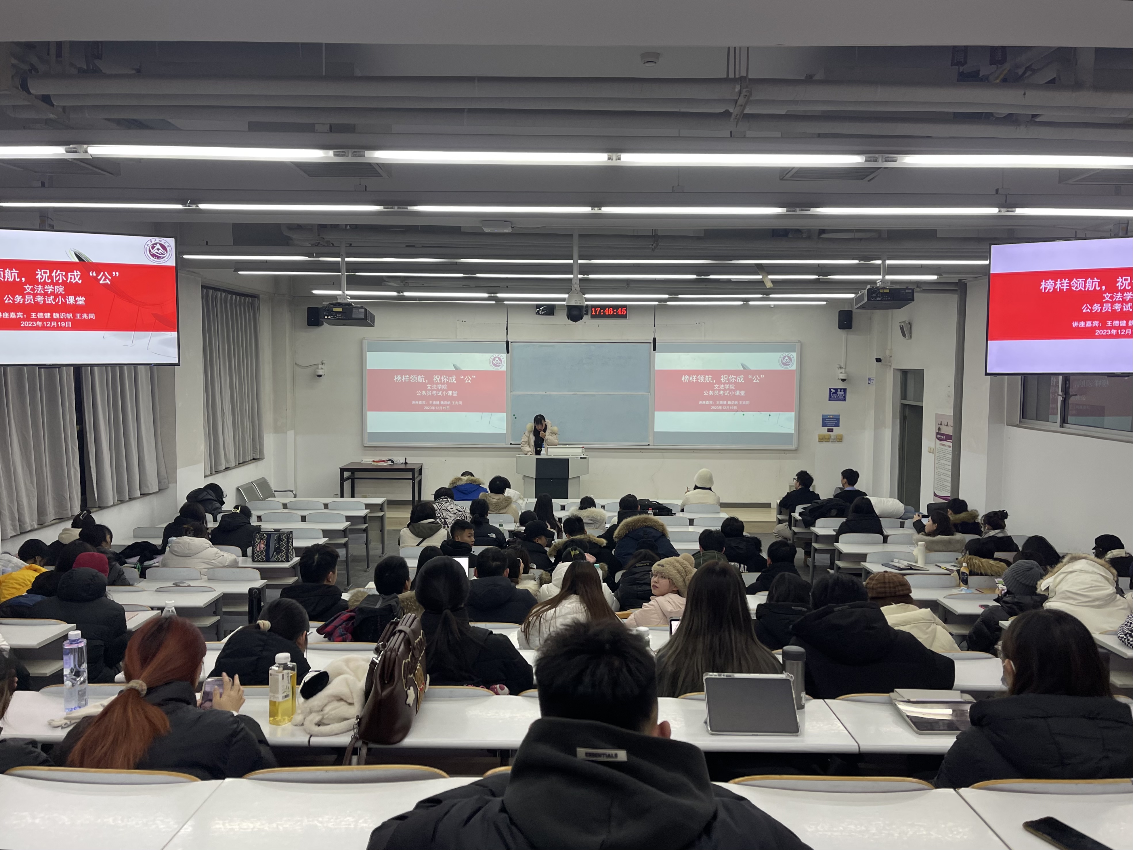 为了帮助同学们了解报考公务员的选岗和复习备考技巧,制定合理的职业规划,12月19日文法学院“祝你成‘公’”考公考编小课堂在瀚学楼110教室开讲。本次讲座邀请了学院2023届考公考编成功的外国语言文学硕士研究生王德健、日语专业本科生海淀区魏识帆、法学(专起本)毕业生王兆同主讲。来自21级本科生、23级贯通、专起本新生150余名同学聆听讲座。活动由辅导员李丽主持。王德健结合自身考取公务员的经验,以通俗易懂、逻辑严密...