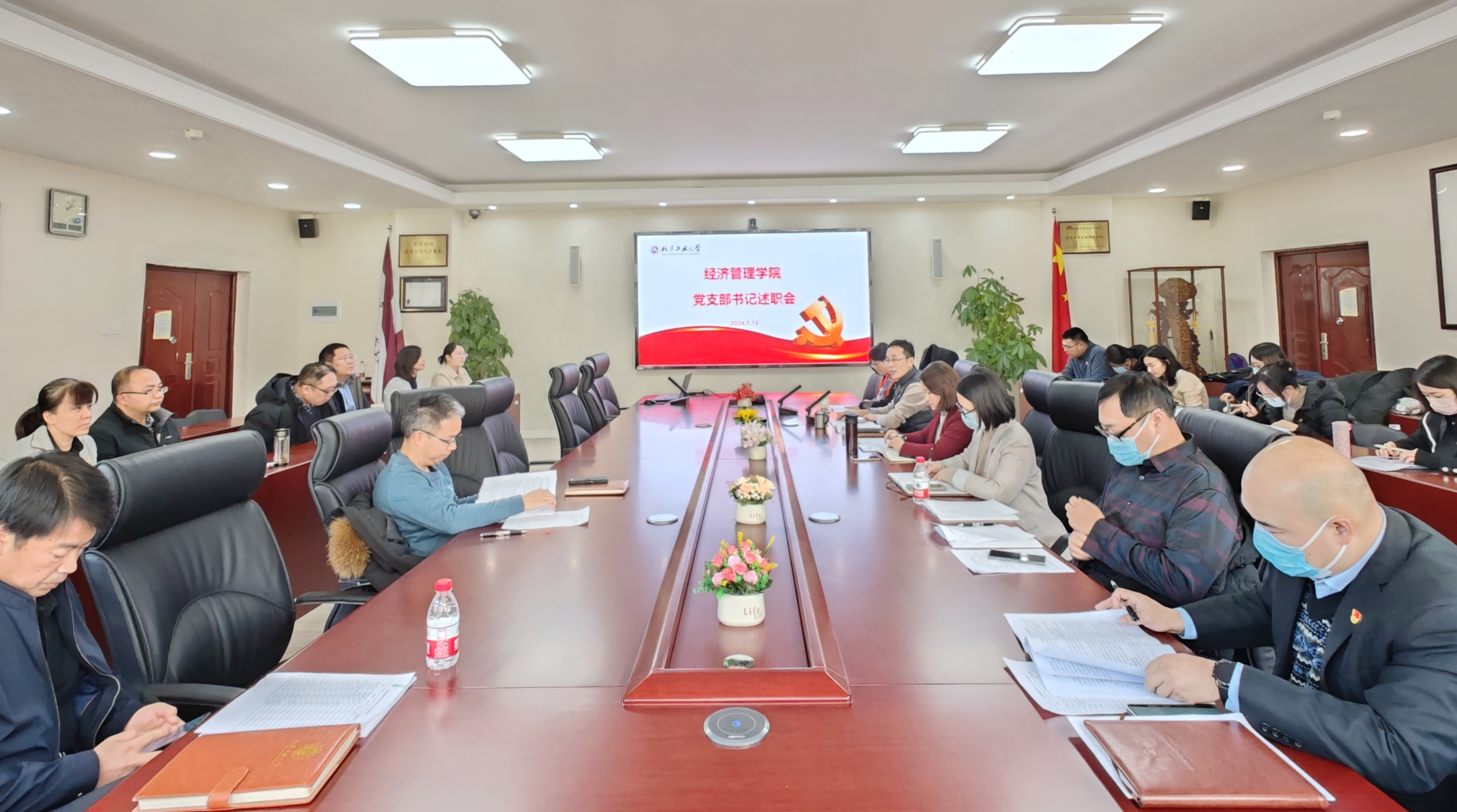 为进一步抓牢基层党组织建设、夯实党建根基,推动高质量党建引领教育事业高质量发展,1月15日下午,经济管理学院党委在励学楼201会议室召开2023年度党支部书记述职评议会,学校组织部正处级组织员王引同志列席会议,学院党委委员和党支部书记参加会议。会议按照“一述一评”的形式进行,学院党支部书记通过PPT展示的形式,分别从支部基本情况、履职主要情况、存在的问题及原因、下一步工作思路等四个方面进行述职。各支部书记具...
