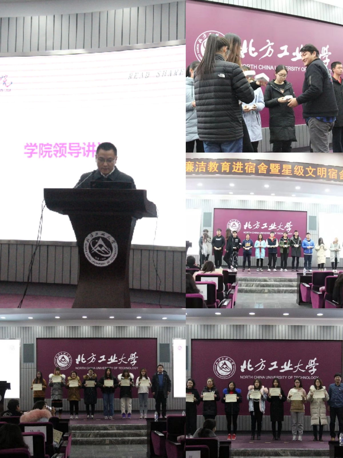 12月5日下午,文法学院在广学楼报告厅举行首届廉洁教育进宿舍暨星级文明宿舍创建活动总结表彰及第二届活动启动仪式,学院党委副书记刘祥坠、团委书记单连良及学生辅导员王波、尤博、阿里木、加娜尔出席活动,活动由2018级辅导员崔梦含主持。单连良老师宣读了文法学院2017-2018学年星级文明宿舍表彰决定并以用微视频展示了星级宿舍的风采,王波、尤博老师分别为雅斋726等14个星级宿舍颁奖。随后对2018级在相约晨光活动中表现突出...