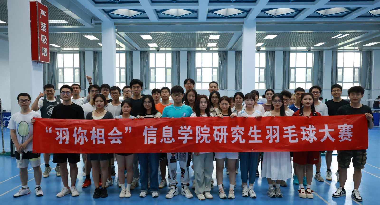 为进一步增强研究生身体素质,发扬体育竟技精神,展示研究生昂扬奋进的精神状态,信息学院于近日在体育馆举办“青春样板,‘羽’你相会”研究生羽毛球比赛。此次比赛包括男双、女双、混双三个项目,共有22支队伍参赛。挥拍无畏,逐梦羽翼5月19日上午,羽毛球赛在体育馆一层拉开帷幕。比赛现场,选手们精神抖擞,表现出顽强拼搏的竞技精神,时而激烈扣杀,时而巧斗网前,精湛的球技让整场比赛高潮迭起。只见白色的羽球在空中飞舞...