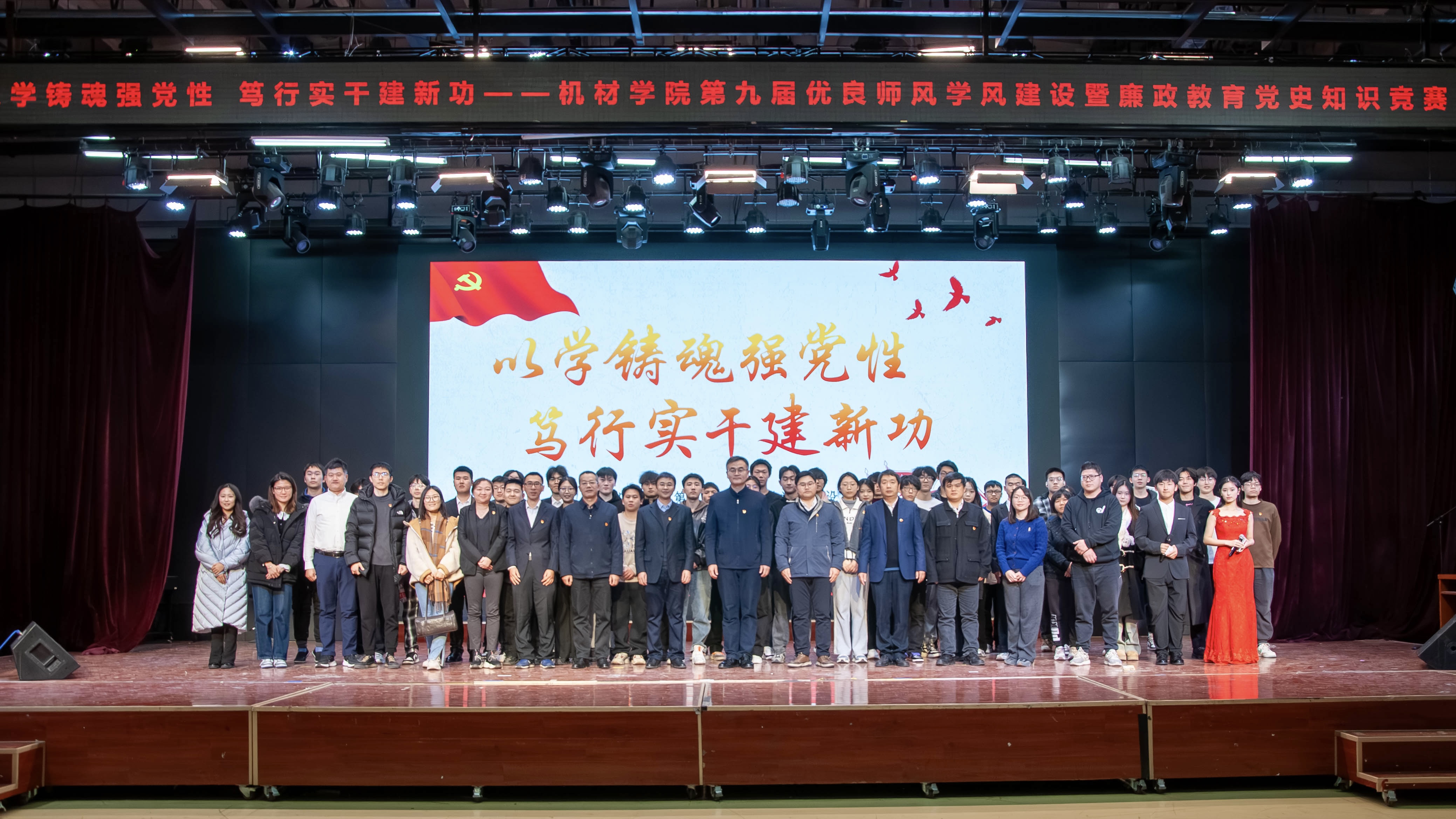 12月5日下午,机械与材料工程学院“以学铸魂强党性笃行实干建新功——第九届优良师风学风建设暨廉政教育党史知识竞赛”在学生服务楼多功能厅隆重举办。校巡察办主任陈勇钢、校纪检监察办公室郭威、机械与材料工程学院领导班子、系/中心主任、党支部书记、学工办成员和全体师生党员近200人参加了活动。学院九支学生党支部参赛代表队参与了现场竞赛。比赛分为必答题、选答题、抢答题三个环节。比赛现场对抗激烈,精彩纷呈,掌声不...