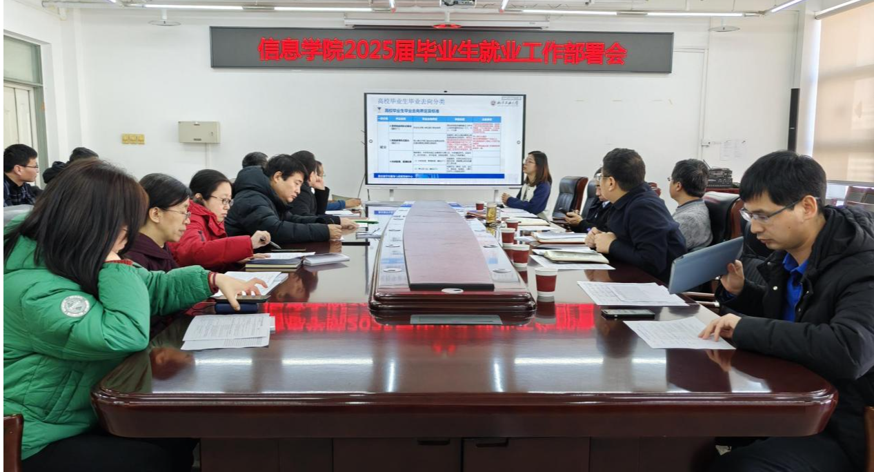 为深入贯彻落实国家、北京市和学校关于毕业生就业工作的决策部署和指示精神,扎实做好2025届本科毕业生就业工作,凝心聚力、全力推进2025届毕业生更充分更高质量就业。12月25日,信息学院在瀚学楼1014举办2025届毕业生就业工作推进会。学校招就处处长王宏波、信息学院领导班子、系主任、2025届毕业班全体班导师和毕业班辅导员参加此次会议。会议伊始,就业辅导员魏静向学院汇报教育部高校毕业生毕业去向分类界定及标准解读;学...
