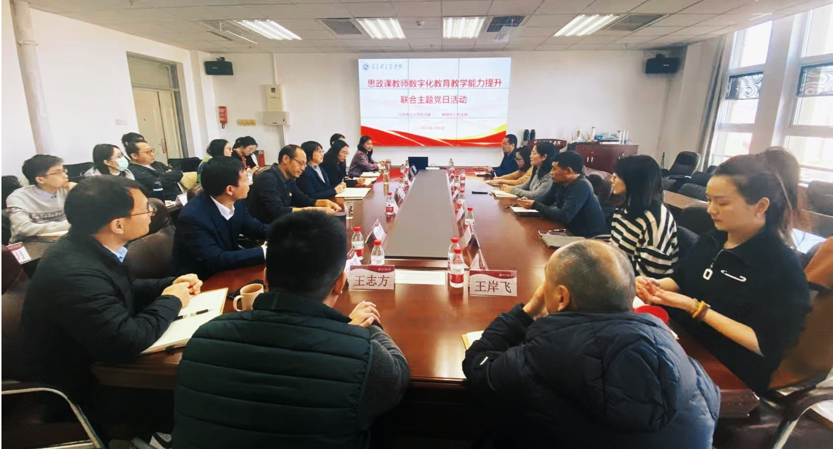 为推进思政课教育教学数字化转型,3月6日下午,马克思主义学院党委与学校网络安全与信息化中心党支部联合举办“思政课教师数字化教育教学能力提升”主题党日活动。马克思主义学院党委书记王引、副书记唐钦、副院长王润稼、网信中心副主任李敏、马时来,以及双方教师党员代表参加活动。双方围绕利用信息技术优化教学运行管理、升级教学评价系统、教务系统功能推广宣传、数据互联互通等核心问题展开热烈讨论。网信中心技术人员还...