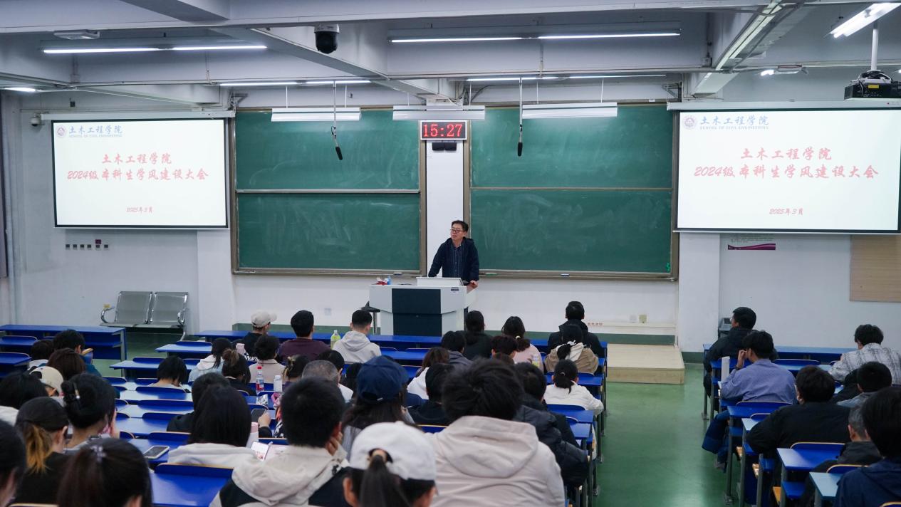 为持续扎实推进学院学风建设工作,进一步深化新生引航工程,近日,土木工程学院在浩学楼东203召开2024级本科生学风建设大会。学院党委副书记冯少杰、团委书记金磊、校团委王铮老师、辅导员孙永君及2024级全体本科生出席了大会。金磊对2024级过去一个学期的学风情况进行了总结,他表示,2024级学生学习成绩较其他年级同期成绩有显著提升,班级整体学风呈现良好上升态势。他强调,学风是治学精神、态度和学生整体风貌的综合体现,...