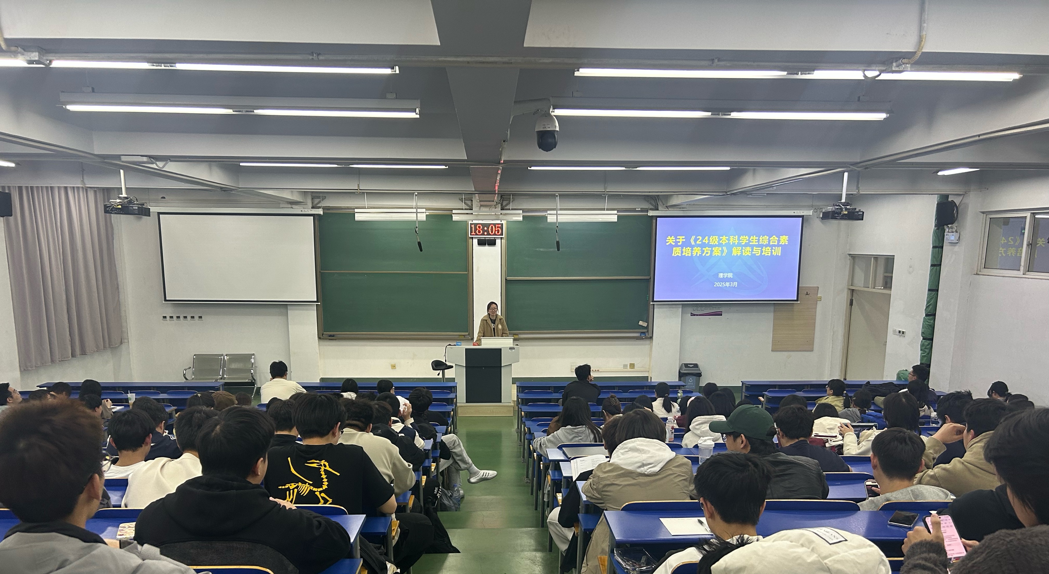 为推动综合素质培养方案有效实施,提升育人质量,3月24日,理学院组织《本科学生综合素质培养方案》解读培训。本次培训面向24级全体学生,帮助他们更好地理解和落实平台相关培养要求。学院本科生兼职辅导员杨宇航同学为24级学生讲解了《24级本科学生综合素质培养方案》,重点围绕5大核心模块分析了同学们获取积分的具体途径,并逐一解读了方案中的有关“毕业要求”、“评奖评优”“推免”等关键条款。在综合素质平台后期的实施...
