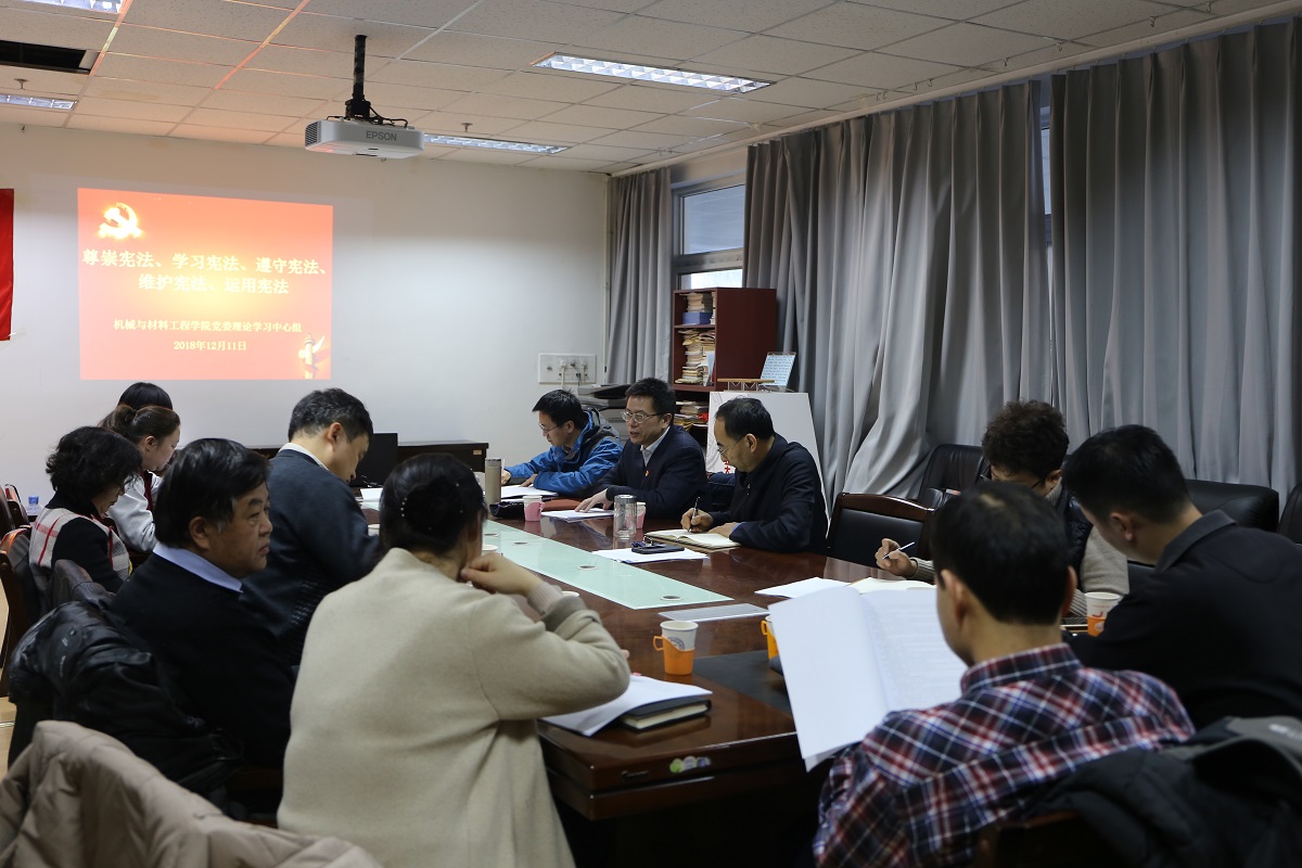 12月11日下午,机械与材料工程学院党委理论学习中心组在博闻楼203室召开学习会,集体学习以“尊崇宪法、学习宪法、遵守宪法、维护宪法、运用宪法”为主题的宪法精神。学院班子成员、党委委员、系/中心主任、工会负责同志参加了学习。学习会由院党委书记王文革主持。学院党委理论学习中心组对宪法的发展历程、宪法的特征、宪法的意义、宪法的内容进行了认真学习。我国现行宪法,即1982年宪法,经过1988年、1993年、1999年、2004...