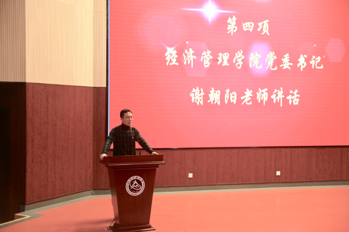 12月11日下午,经济管理学院学生代表大会在文化会堂隆重召开。学院党委书记谢朝阳、党委副书记赵洁,辅导员吴芳、朱洪江以及各年级学生代表参加了会议。大会在庄严的国歌声中正式拉开帷幕。谢书记代表学院党委,发表了讲话,他对学代会的召开表示祝贺,对各位学生代表为学院的发展积极建言献策表示感谢。同时,谢老师也对大家提出三点希望。一是希望大家要加强理论学习,坚定理想信念,把握人生中最美好的时光,尽快成长为祖国...