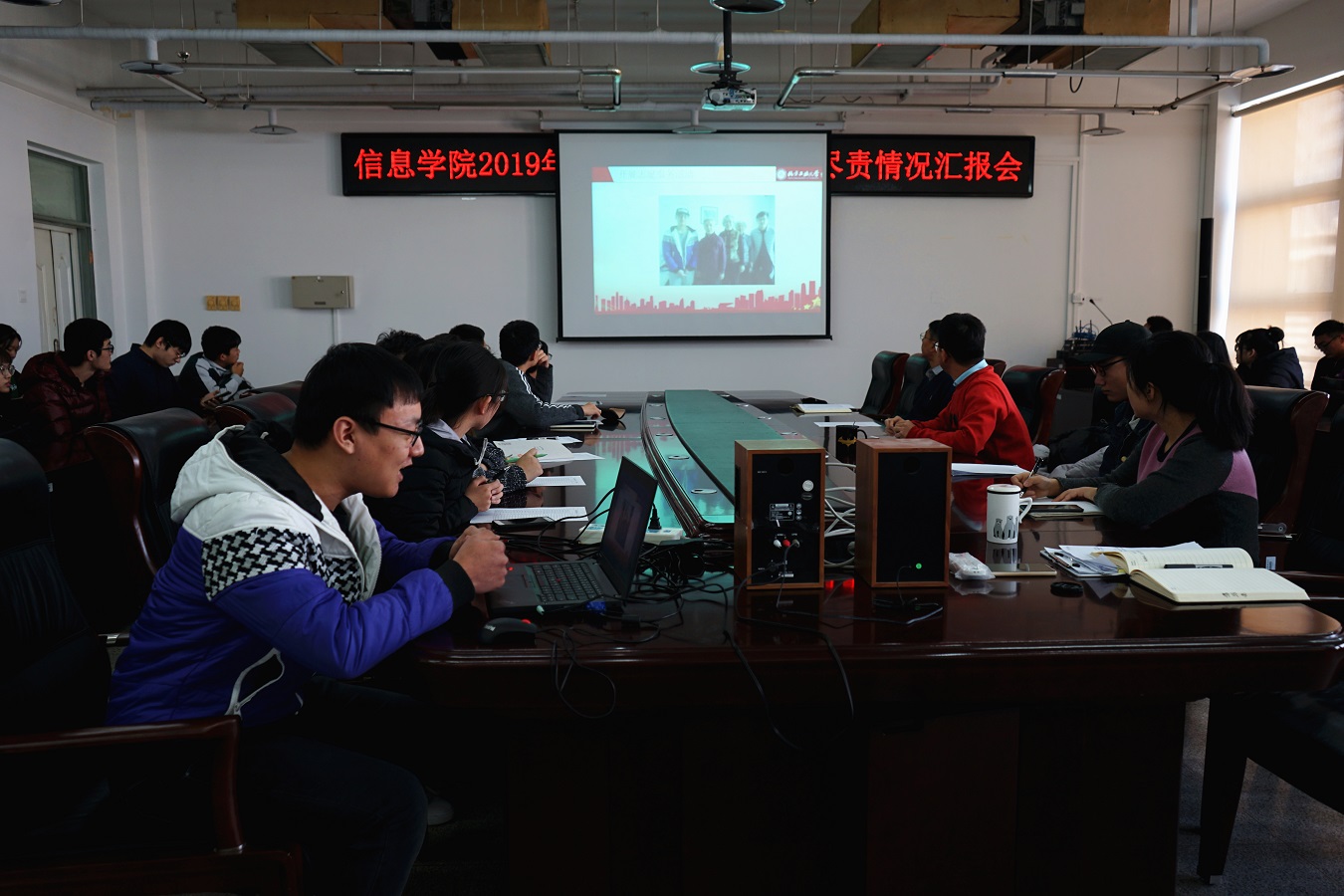 为综合考察预备党员预备期履职尽责情况,特别是“五个一”工程的开展情况,提高党员队伍的整体素质,信息学院党委于11月20日在瀚学楼1014会议室召开了“预备党员履职尽责情况汇报会”。学院党委书记刘文楷、党委副书记陈卫、学生党建中心全体成员以及2019年秋季学期拟转正的预备党员参加了汇报会。汇报会由学生党建中心副主任杨和家主持。27名预备党员重点汇报了一年预备期内自己培养一名积极分子、阅读一本理论书籍、开展...