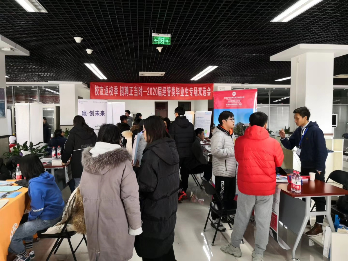 12月25日下午,在学校招生就业处的指导和支持下,经管学院首届经管类毕业生专场双选会在学生服务楼三层举行。经管学院院长赵继新、党委书记王伟宾、副院长陶晓波、副书记赵洁、各系主任、16级班导师和学院全体辅导员参加了活动。前期,学院经过与校友联系,邀请有招聘需求的校友所在单位进校招聘,此次共有21家单位参会,涉及营销、管理、会计、审计、金融、教育等多个岗位,基本覆盖学院全部专业学生的求职需求。现场,学院还...