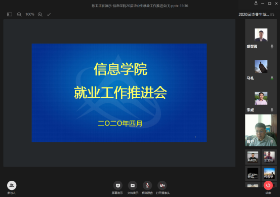 为切实推进2020届毕业生就业工作,进一步落实学校关于做好2020届毕业生就业工作的要求,4月17日上午,信息学院召开2020届毕业生就业工作推进视频会议。学院党委书记刘文楷、院长马礼、副院长宋威、各系主任、2020届毕业班班导师及辅导员参会。会议由学院党委副书记陈卫主持。 会上陈卫副书记首先传达了上级及学校关于2020届毕业生就业工作有关文件精神,介绍了学院目前整体的就业情况,提出了学院2020届毕业生就业工作的整体目...