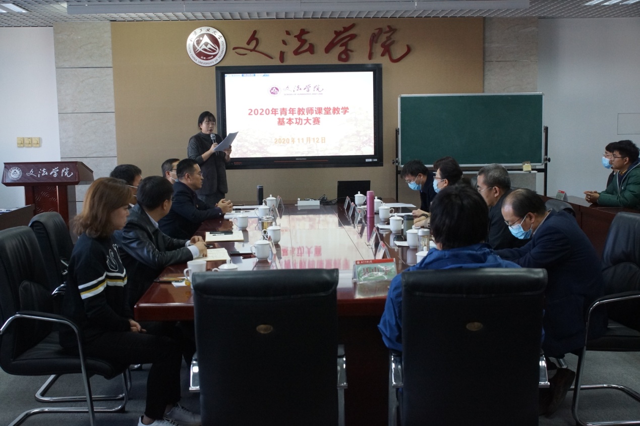 为促进青年教师练好课堂教学基本功,提升课堂教学技能,提高课堂教学质量,11月12日,文法学院在瀚学楼710举行了青年教师课堂教学基本功比赛。教务处处长刘文楷、学院领导班子成员、各系主任、责任教授和部分教师代表、学生代表共70余人现场观摩了比赛。此次共有来自法律系、中文系和公共英语系的5名老师参加了比赛,大赛分为教案评价和教学演示评价两个环节,综合决定最后名次。比赛中,选手们仪态端庄、镇定自信、语言流畅、...
