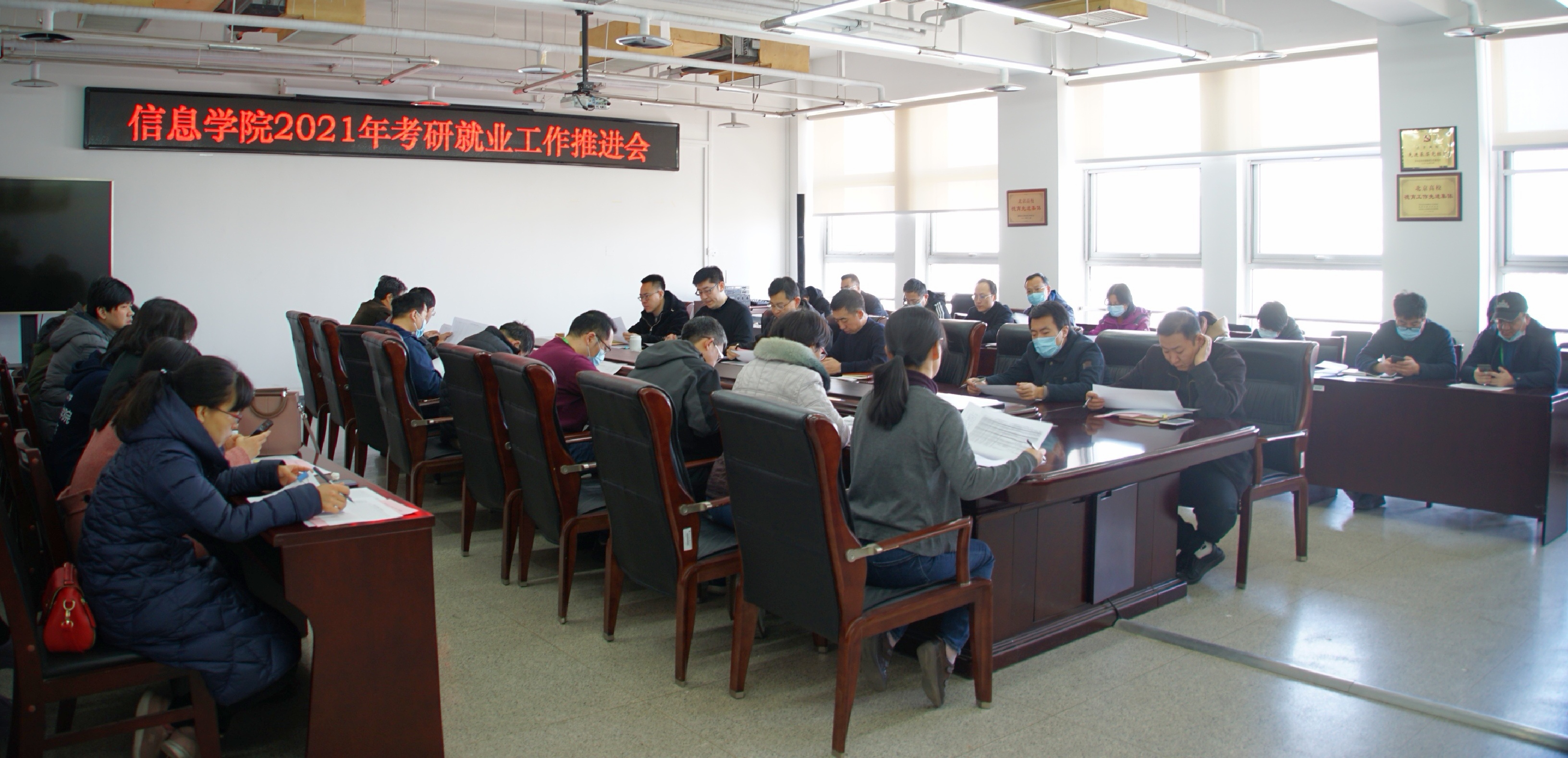 为推进“三全育人”落细落实,促进学院人才培养质量再提升,信息学院自2020年10月建立了以“院长书记牵头--副院长副书记统筹推进--系主任责任教授专业指导--辅导员‘一人一策’就业指导--班导师‘一班一台账’就业跟踪”为主体的就业工作支持体系,助力毕业生高质量就业。为进一步凝聚合力,加强统筹协调,推进工作落实,信息学院于3月16日召开2021届毕业生考研就业工作推进会,学院领导班子、各系主任、责任教授、2017级各班导...