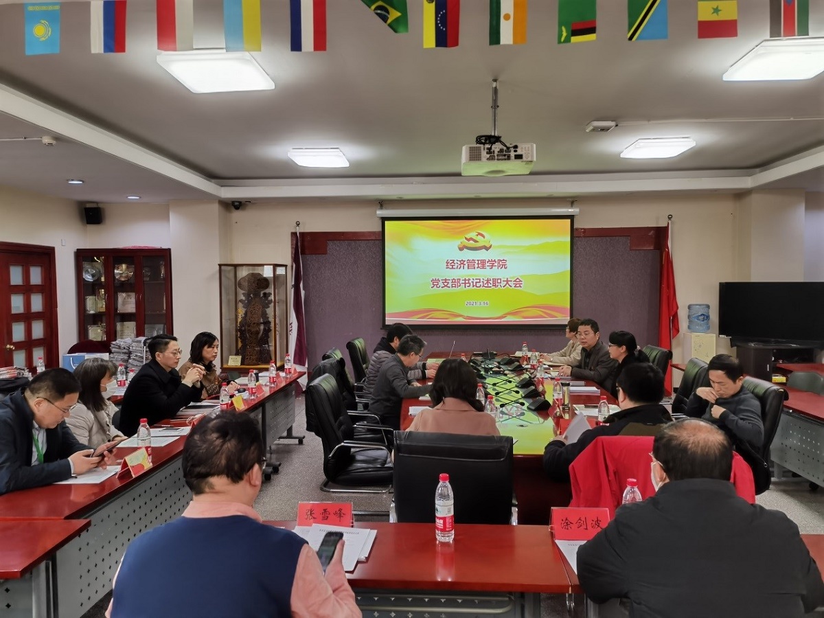 3月16日下午,经济管理学院党委召开2020年度党支部书记述职评议会,学院党委委员和各党支部书记参加述职会,组织部王丹列席了会议。各党支部书记通过ppt展示的形式分别从履职的主要情况和特点、存在的主要问题及原因、下一步工作思路和主要措施等三个方面进行述职,大家汇报了疫情防控下的党建工作开展情况、“三会一课”、党员发展、支部先锋作用发挥等方面的主要做法和工作成效,就党支部的政治建设、思想建设、组织建设等进...