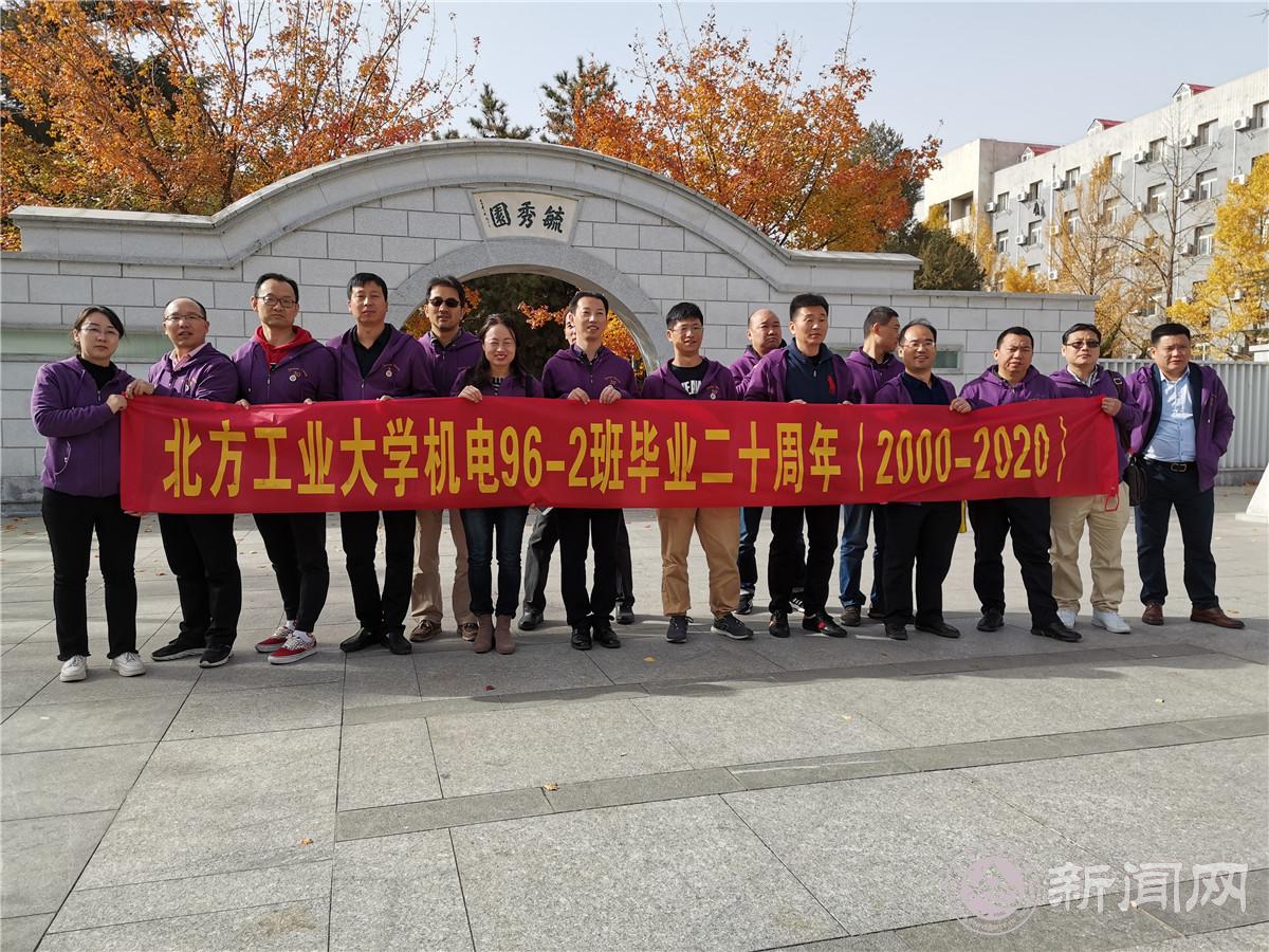 机械与材料工程学院机电96-2班校友统一着装,重走校园路,重温同窗情。