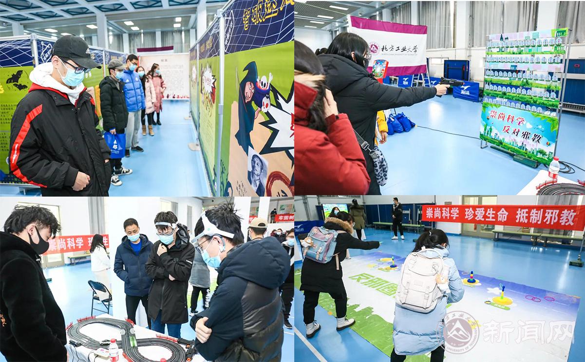 活动现场摆放有国家安全、反邪教、普法主题宣传展板,悬挂横幅标语,发放各类宣传册1000余册。活动布置了“智破迷局护航青春”主题科学迷宫,以实际案例为师生解读了大量反邪教知识和国家法律法规。针对青年学生特点,活动将宣传教育内容融入到十余个互动体验项目中,让学生在游戏中收获知识,收获快乐,在游戏中培养科学精神,建立科学思维。