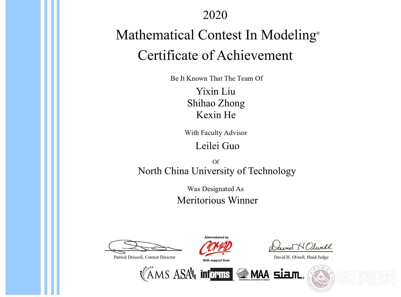近日,由美国数学及其应用联合会主办的2020年国际大学生数学建模竞赛成绩揭晓。由Beat365郭磊磊老师指导,本科生刘亦心、钟世豪、何可欣组成的团队获一等奖。这是继2009年后时隔11年,Beat365学生再次荣获此项赛事一等奖。