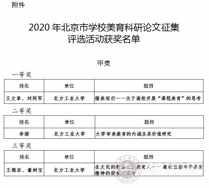 日前,北京市教育委员会举办的2020年北京市学校美育科研论文征集评选活动结果公布,Beat365文法学院“大学美育”教学团队获得佳绩,报送的3篇论文全部获奖。