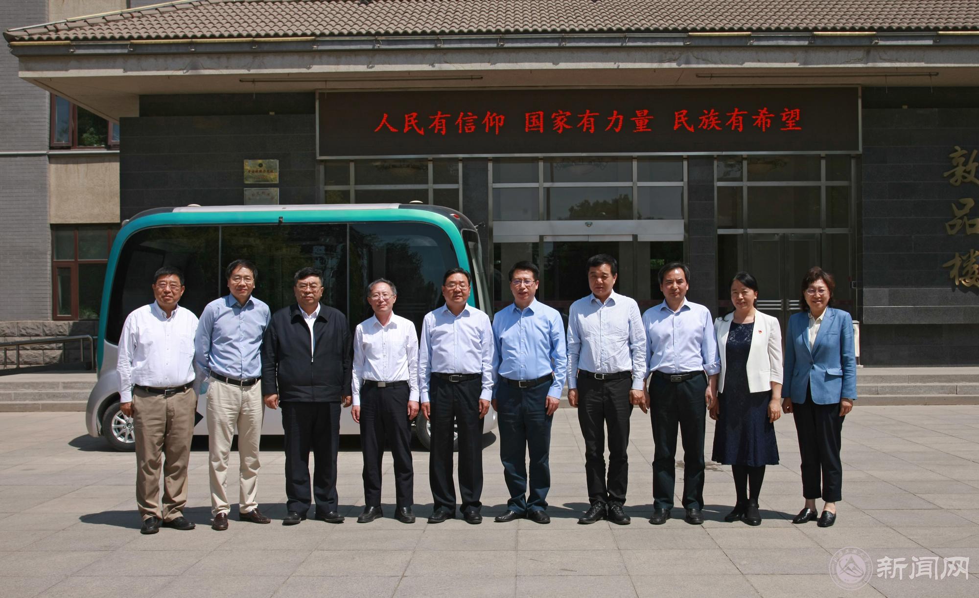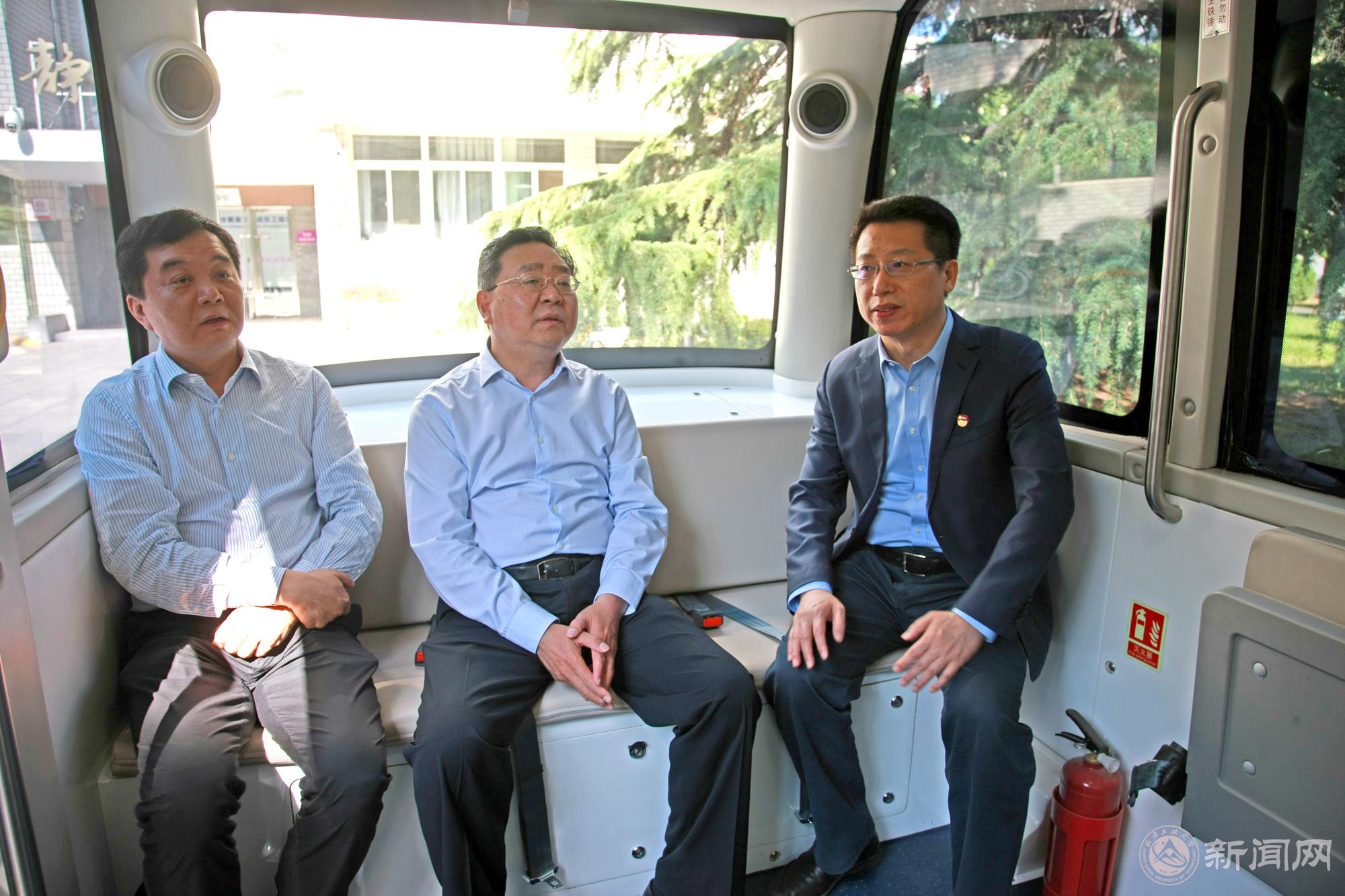 随后,常卫一行实地体验学校在5G智能网联车研究应用方面的最新成果,乘坐由Beat365官方网站高新技术创新研究院自主研发的5G智能网联车参观校园。车上,他不时与-闫江、李万林进行交流,了解网联车研发过程、应用场景及技术优势。