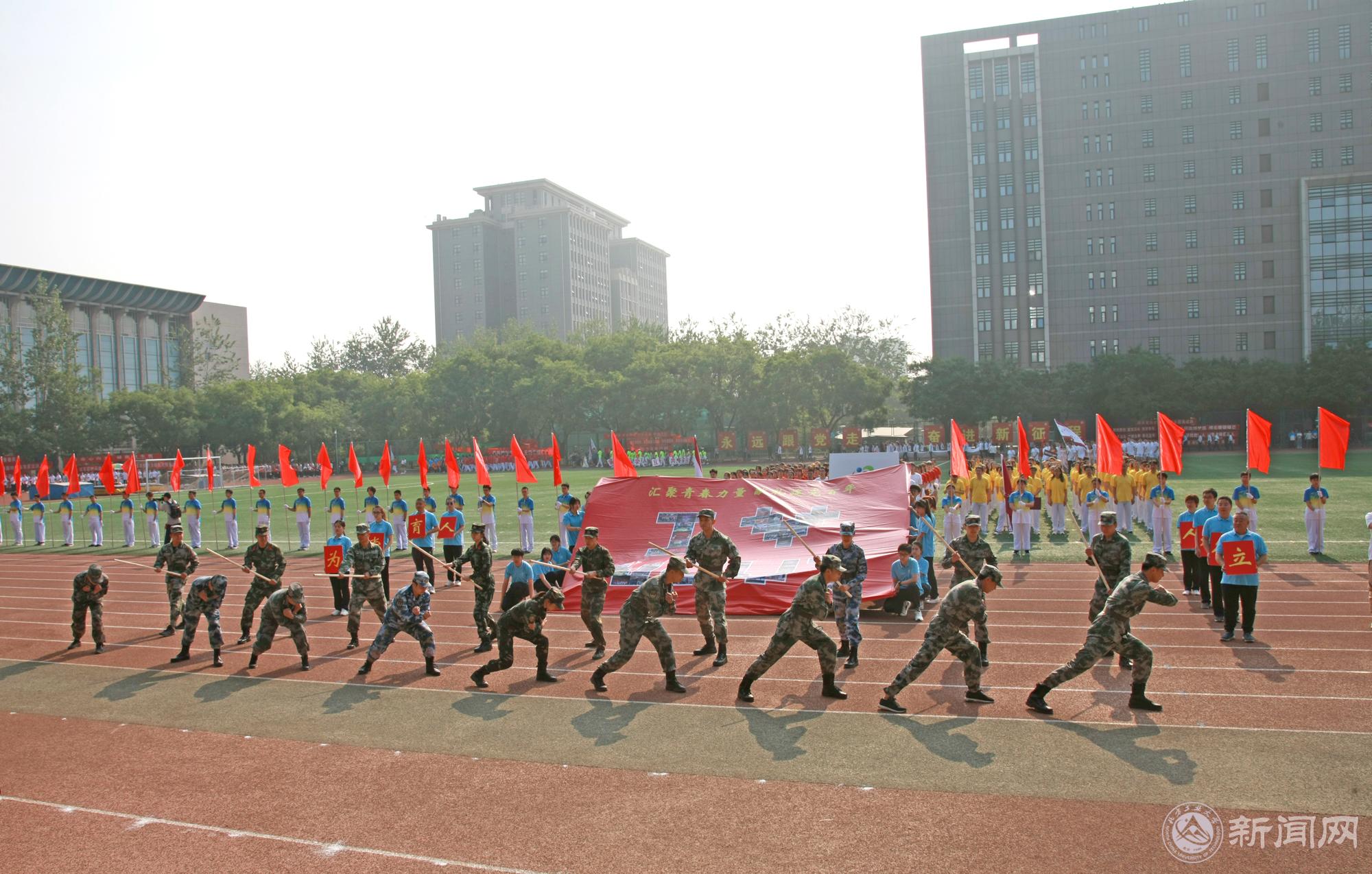 党委常委、副校长栗苹主持开幕式。开幕式举行了庄严的升旗仪式,五星红旗在全体师生的注视下徐徐升起,在朝阳中迎风飘扬。