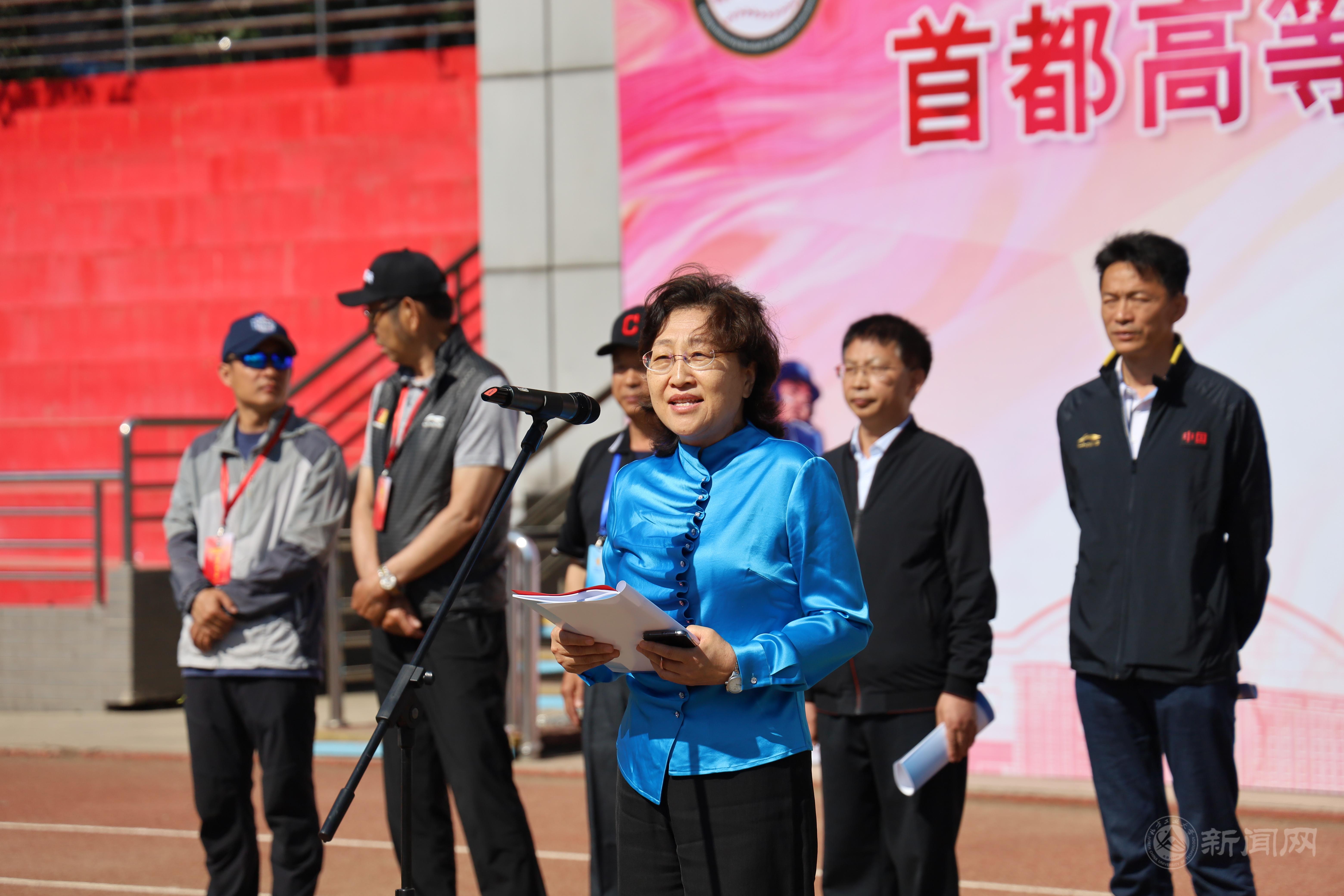 栗苹致欢迎词并宣布首都高等学校第二十六届棒垒球锦标赛开幕。随后栗苹、杨慈洲、龚维华、康钧共同为比赛开球。