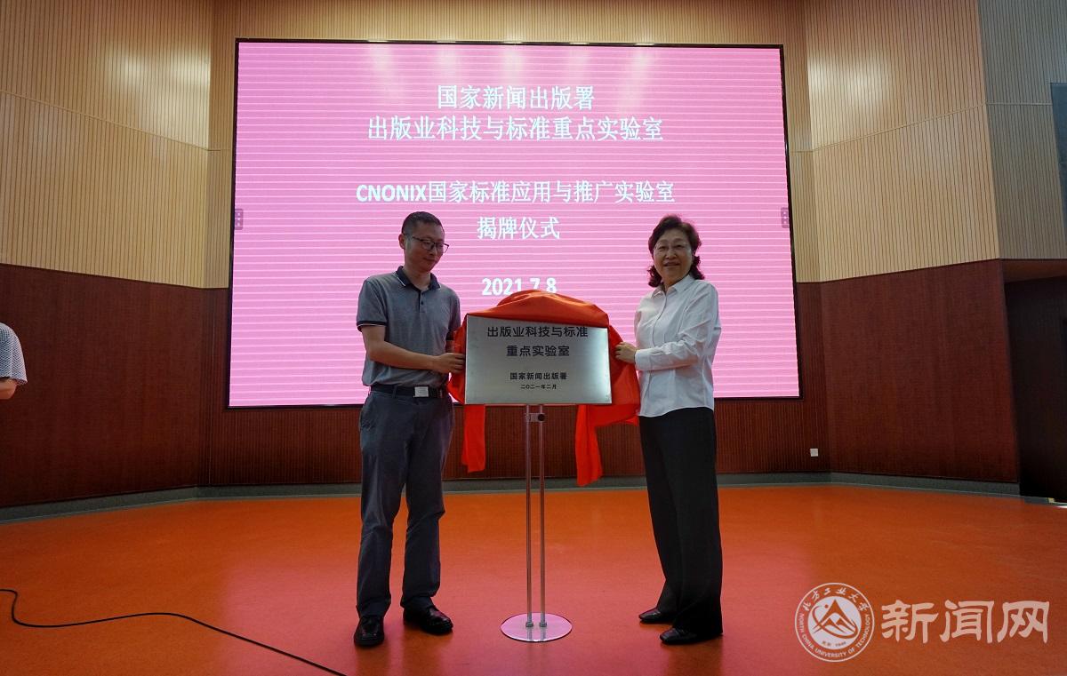 为助推出版业创新体系建设,服务出版业高质量发展,国家新闻出版署于2021年2月遴选发布了42个出版业科技与标准重点实验室,其中“CNONIX国家标准应用与推广实验室”由Beat365官方网站牵头,上海新华传媒连锁有限公司、北京中启智源数字信息技术有限责任公司、中国出版传媒商报社共同建设,重点开展基于CNONIX国家标准的应用模式创新。安乐处长与栗苹副校长为实验室揭牌。