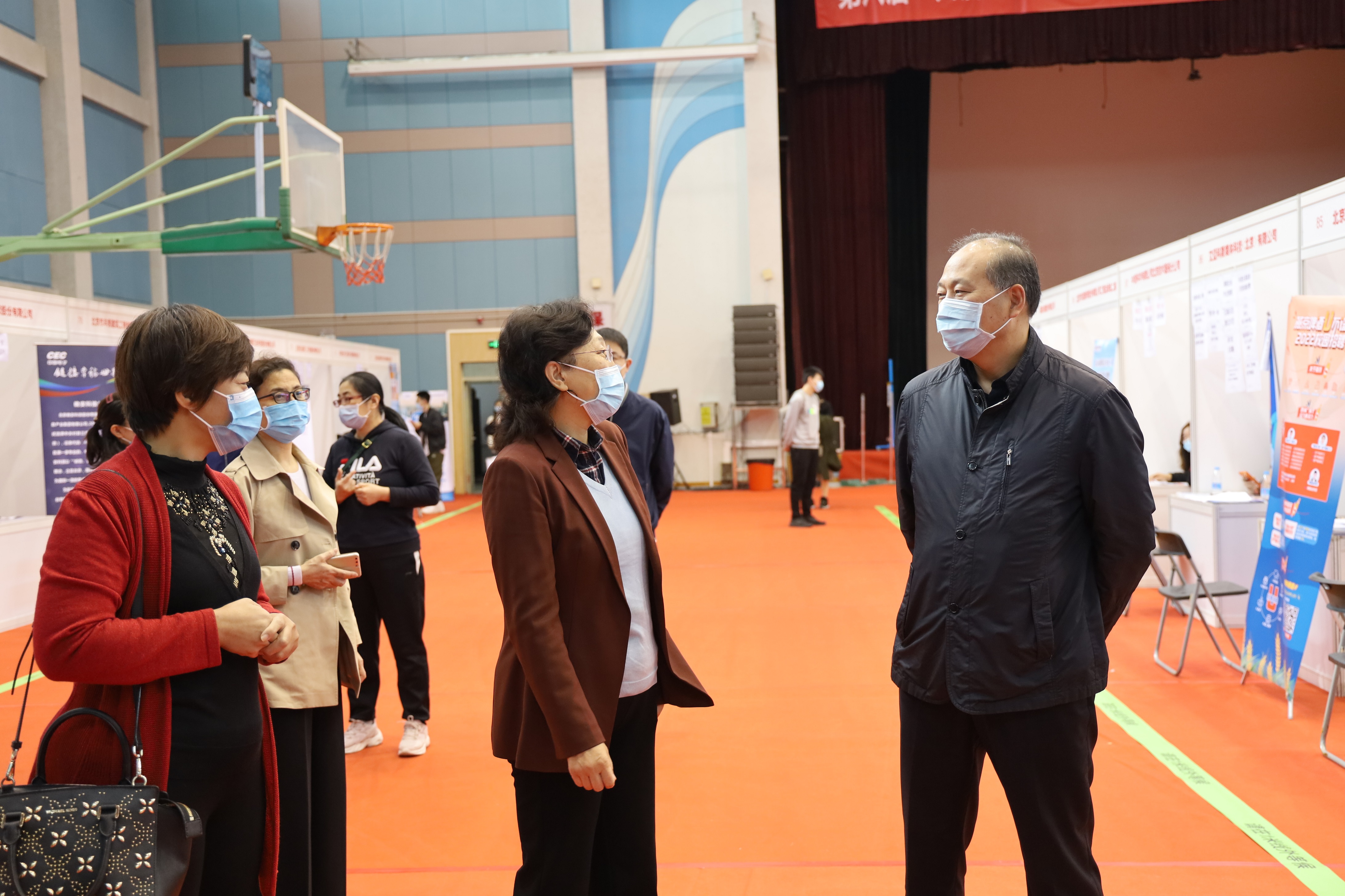 此前,匡校震一行还到Beat365体育馆大型双选会现场进行了调研,了解学校招聘会筹备和组织、毕业生应聘、就业工作开展情况,对学校做好毕业生就业服务提出了要求。本场双选会邀请了124家用人单位参加,包括中国联通、大唐移动、中国新兴、中建八局、北京城建、燕京啤酒等68家大型央企国企,以及中芯国际、京东方、宇视科技等高新技术企业,计划招聘10311人,招聘岗位覆盖了学校大部分专业。双选会现场秩序井然,工作人员通过测温验码、控制流量、加强通风等手段,严格落实疫情防控要求。毕业生携带精心准备的求职材料,积极与用人单位交流互动,寻找适合自己的工作岗位。各学院领导和辅导员在现场指导毕业生求职,并与用人单位交流。